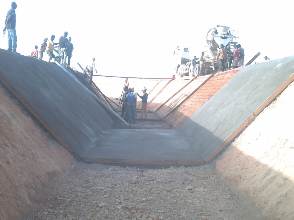 Les travaux ont été réalisés pour le compte de l’Administration et Contrôle des Grands Projets (ACGP) et ont porté sur la transformation d’un canal existant en un ouvrage moderne, robuste et adapté aux importants débits d’eau nécessaires aux exploitations agricoles de la zone. Grâce à la construction en béton armé, le canal bénéficie d’une résistance accrue à l’érosion, d’une meilleure régularité des écoulements et d’une réduction significative des pertes d’eau par infiltration.